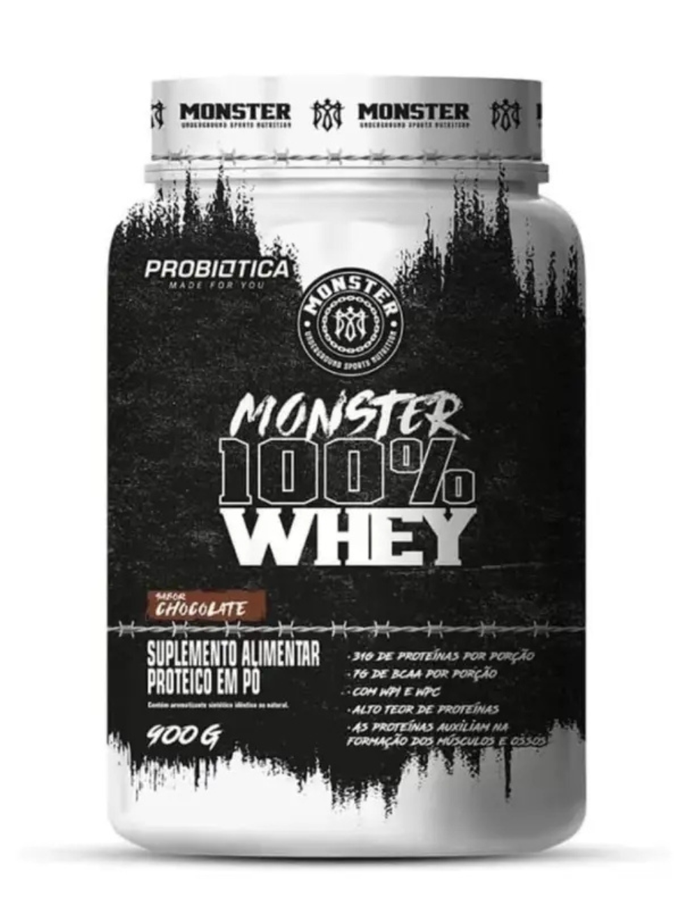 Whey Protein 100% Monster 900g – Sabor Chocolate I Probiótica